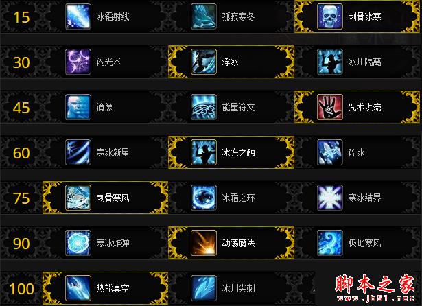 魔兽世界7.2冰法天赋加点(30级天赋可用闪光术替换)